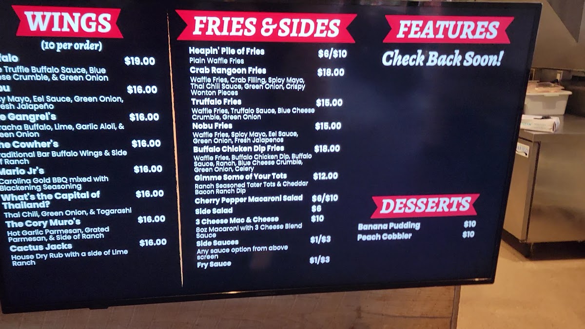 Whether you're stopping by for a midday burger or gathering with friends over a flight of craft beers and inventive cocktails, the menu supports a lively, sociable atmosphere. You’ll find hearty choices like The Burger and Mushroom Bacon Swiss Chicken Sandwich alongside shareable plates such as Crab Rangoon Fries and Birria Tacos, making it easy to mix and match for groups or solo visits alike.